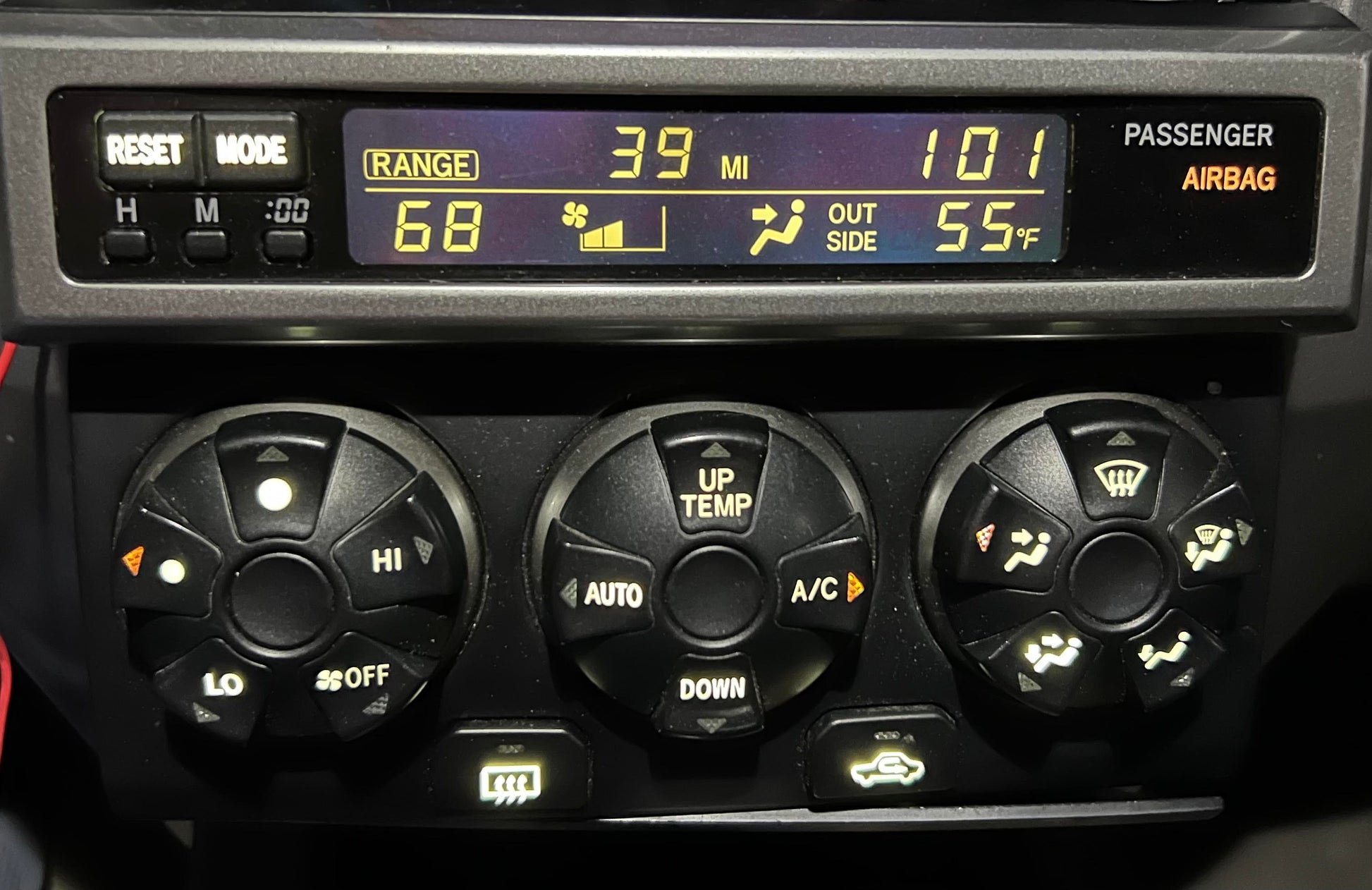 This service replaces all of your factory orange lights in the HVAC and your push button lights around your dash. Your whole HVAC unit, all buttons (4x4,rear window, DAC, 115v, diff lock, seat warmers, shifter light, cup holder light etc.)